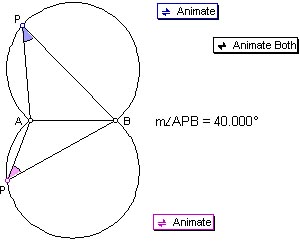 Note: JavaSketchpad cannot support this GSP file. To move P, open the file IT4EMLociFixedAngle.gsp using Geometer's Sketchpad.